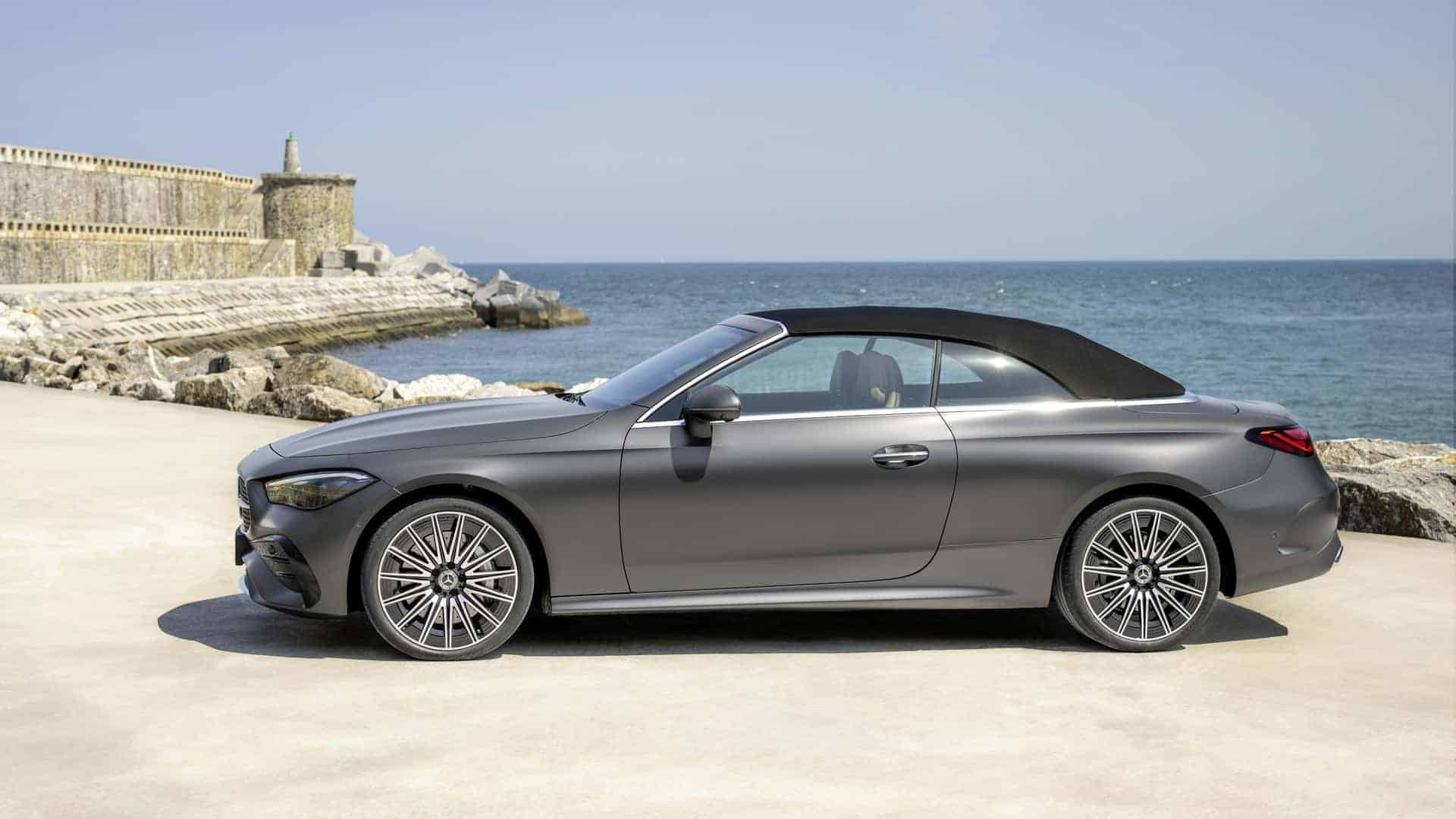 ظهرت سيارة المرسيدس الجديدة ذات السقف القماشي القابل للطي كهربائياً في الصور الرسمية ، تقع سيارة CLE كشف أسفل سيارة SL باهظة الثمن ، وتُوصف بأنها أكبر سيارة في فئتها .