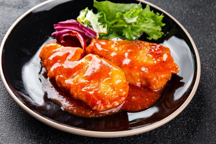 ![]() ![]() مقادير فيليه سمك حامض حلو - سمك الفيليه : 600 غراماً - عصير الليمون : ربع كوب (حامض) - الصويا صوص : 2 ملعقة كبيرة - العسل : 2 ملعقة كبيرة (صوص العسل) - الزنجبيل : 2 ملعقة صغيرة - الثوم : فصّان (مهروس) - ملح : رشّة - فلفل أسود : رشّة - زيت الزيتون : 2 ملعقة كبيرة طريقة تحضير مقادير فيليه سمك حامض حلو إمزجي عصير الليمون، وصوص الصويا، وصوص العسل، والزنجبيل المبشور، والثوم المهروس، والملح، والفلفل الأسود في وعاء عميق. أضيفي فيليه السمك فوق مزيج التتبيلة، وقلّبيه جيداً حتى يتغطى بالتتبيلة من جميع الجهات. ضعي الوعاء في الثلاجة لحوالي نصف ساعة حتى يتشرّب الفيليه النكهات. سخني زيت الزيتون في مقلاة على نار متوسطة. إرفعي السمك من التتبيلة وجفّفيه قليلاً بورق المطبخ، ثم ضعيه في الزيت لحوالي 5 دقائق من كل جانب حتى ينضج ويصبح ذهبي اللون. ضعي فيليه السمك حامض حلو في طبق التقديم، وزيّنيه بشرائح الليمون، ثم قدميه ساخناً. ![]() |